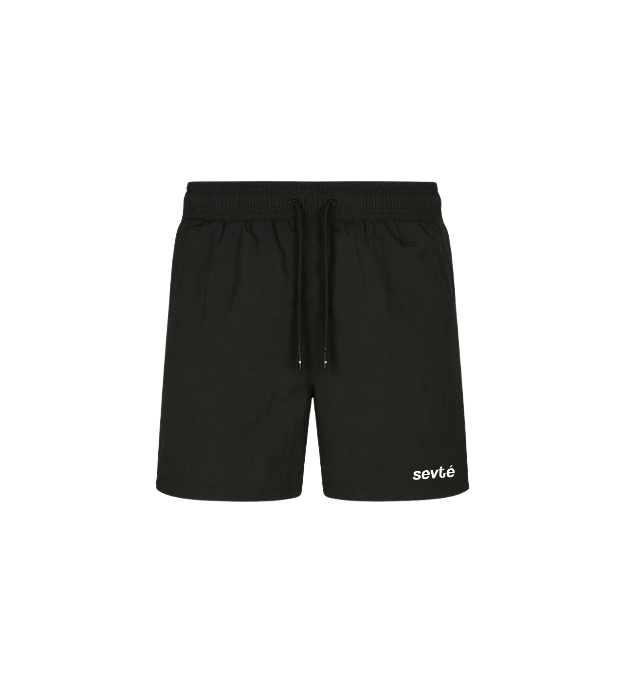Cut with a regular fit and 7-inch inseam, it's crafted from fast-drying polyester with an elasticated waistband and inner lining for support. Finished with two side pockets, a zipped back pocket, and the italic SEVTÉ logo, the original mark of the brand.
